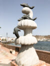 In Muscat wollten wir mal etwas auf eigene Faust unternehmen – das Schiff lag ja nahe am Hafenvorort Mutrah. Den Empfehlungen unseres Reiseführers folgend wanderten wir dann bei 34°C (im Schatten) die schöne Corniche entlang Richtung Muscat. Was uns der Reiseführer nicht sagte: es waren 5 km Fußweg nach Muscat und es gab unterwegs keinen Schatten! In Muscat angekommen regenerierten wir kurz bei einem leckeren Eistee in einem Museumscafe. Anschließend nahmen wir noch den Palast von Sultan Quaboos in Augenschein bevor wir wieder – diesmal per Taxi – nach Mutrah zurück fuhren. Schließlich brauchten wir unsere letzte Kraft noch für eine Shopping-Tour im Mutrah-Soukh – Datteln, Weihrauch, Gewürze, was man halt so braucht!