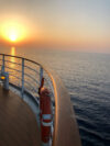 Von Hamburg im Nachtflug nach Dubai und ab Mallorca wieder zurück; Bremen <-> Hamburg jeweils mit dem Zug. Dazwischen lagen nicht nur sehr schöne Reiseziele, viele Seetage – alleine 4 zwischen Salalah und Aqaba – sondern auch ein überaus abwechslungsreiches Bordleben: Unterhaltung mit Manes Meckenstock und Kim Bärly, eine Cartoonshow von Piero Mastalerz, informative Vorträge unserer Lektorin Nadja Münchenhagen, entspannte „Lounge-Abende“ auf dem Pooldeck mit „unserem“ Gitarristen Victor, etliche Cocktails, gewonnener Champagner (Publikumspreis bei „Wer wird Milliomär“) und leckeres Essen im Rossini und Sushi-Restaurant.