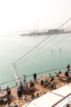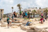 Nach einer Fahrt durch die Stadt wieder hinunter ans Meer ließen wir die Fahrräder stehen und fuhren mit der Haifa-Seilbahn trotz Höhenangst (!Klaus!) den Berg Karmel hinauf zum Karmelitenkloster Stella Maris mit der Elija-Höhle, die als ehemaliger Wohnort und Grab des Propheten gilt. Der Aussichtspunkt bietet einen Ausblick über die gesamte Bucht von Haifa. Wieder unten angekommen genossen wir die frische Brise an der türkis-blauen Küste und verbrachten den Sabbat-Nachmittag wie die Einheimischen an der Promenade. Mit einem kurzen Abstecher zu den hängenden Gärten der Bahai mit dem Schrein des Bab (leider war geschlossen) beendeten wir unsere entspannte Radtour.