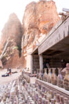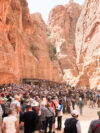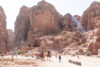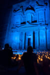 Die beste Entscheidung unseres Urlaubs war, den Besuch der nabatäischen Felsenstadt Petra mit einer Übernachtung vor Ort zu verbinden. So fuhren wir bereits am Nachmittag nach Ankunft im Hafen von Aqaba mit dem Bus durch die staubigen Berge auf eine Höhe von 1000 m ins jordanische Hinterland. Nach Check-in und kurzem Abendessen im Hotel direkt neben dem Besuchereingang zu Petra konnten wir dann bei angenehmen Temperaturen um 25°C bei einer exklusiven Veranstaltung mit einer überschaubaren Besucheranzahl dem Schatzhaus von Petra einen ersten Besuch bei Kerzenschein abstatten.