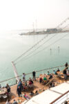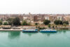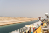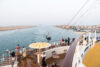 Schon nachts hatte sich unsere Stella in den Konvoi an vierter Position eingereiht und ab 06:00 Uhr morgens war das halbe Schiff auf den Beinen, um die Durchfahrt durch den 193 km langen Kanal mitzuerleben. Während der 10-stündigen Passage erlebten wir de facto eine Fahrt durch die Wüste, links das ägyptische Festland und rechts die Sinai-Halbinsel. Mal konnten wir Städte und landwirtschaftlich genutzte Flächen fotografieren, mal sahen wir nur Sand bis zum Horizont.
