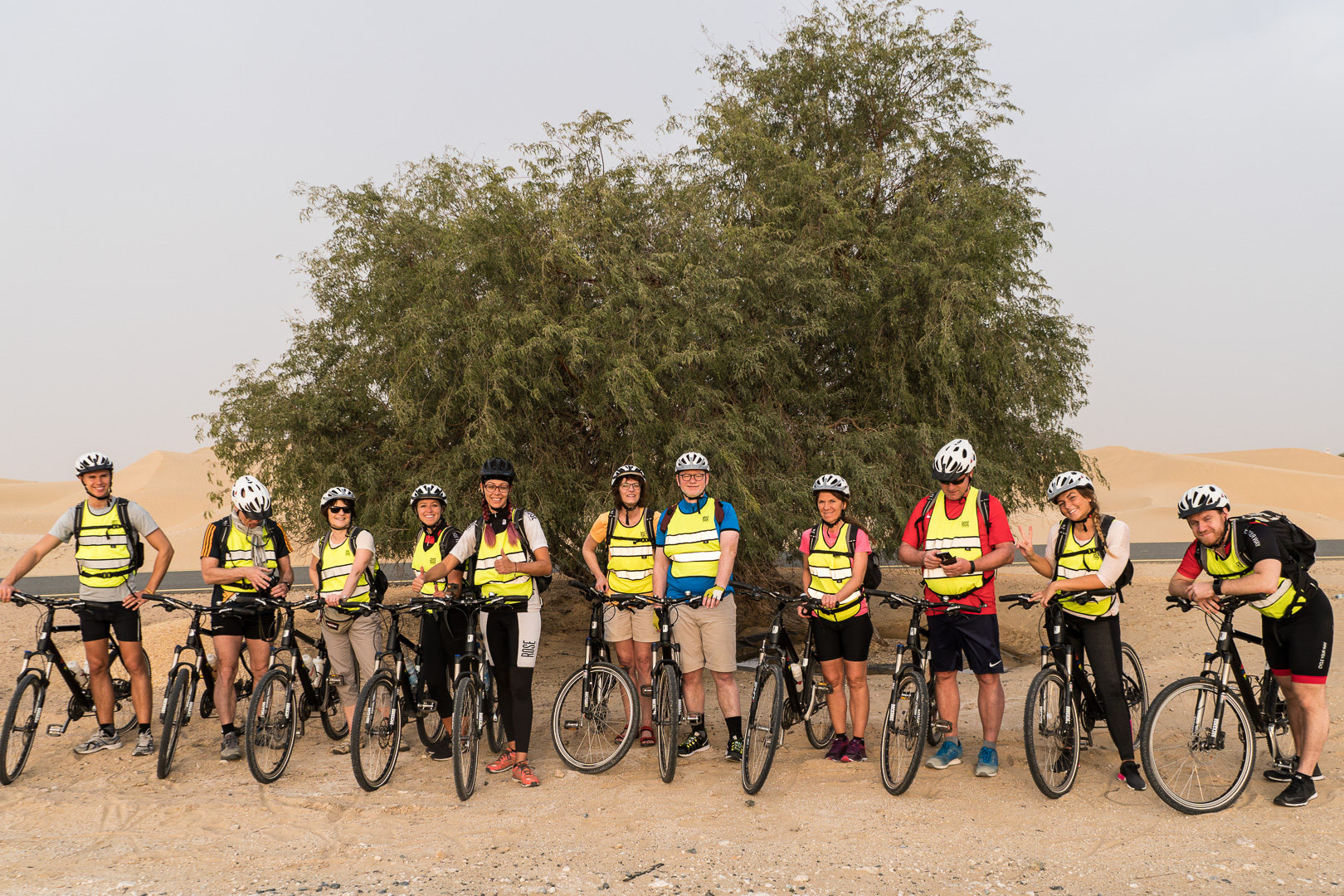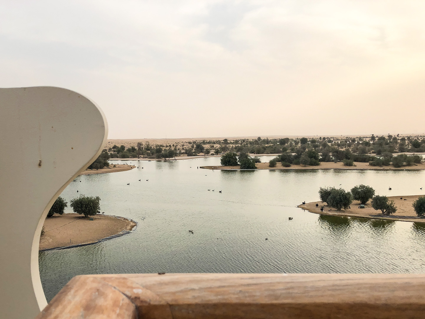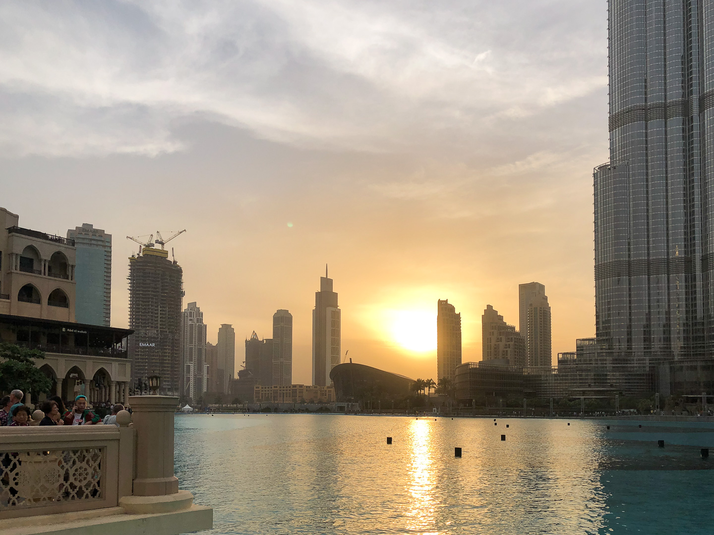 Nach einem kurzen ersten Abend auf dem Schiff brachen wir wieder mitten in der Nacht um 03:30 Uhr mit dem Bus zum Stadtrand auf. Von dort fuhren wir mit den AIDA-Fahrrädern auf dem neuen Fahrradhighway in die Wüste, um dort den Sonnenaufgang zu erleben. Auf dem Rückweg schauten wir noch bei den Flamingos der Oase „love lake“ vorbei. Die Sightseeing-Bustour „booming Dubai“ am Nachmittag zeigte uns den Gigantismus der künstlichen jungen Wüstenmetropole. Vorbei an Baustellen und Wolkenkratzern steuerten wir schießlich die Mall of the Emirates an und bewunderten die Wassershow am Burj Khalifa. Aber eines muss man ihnen lassen: Sonnenuntergänge können sie!