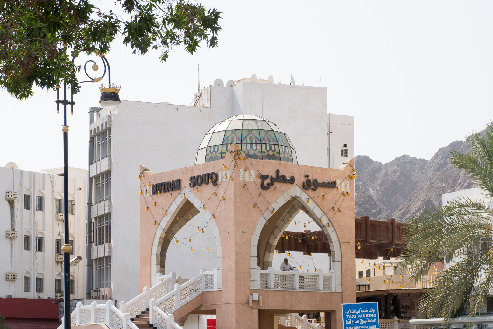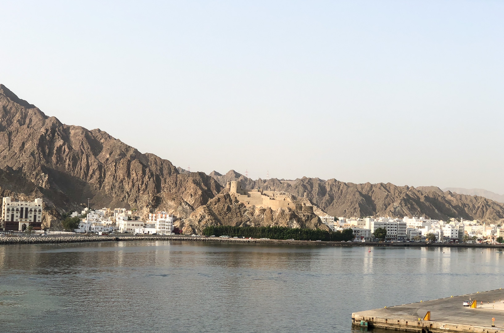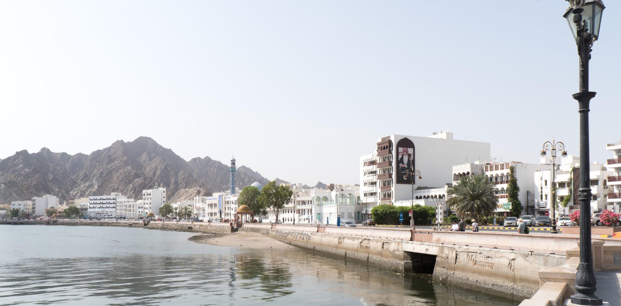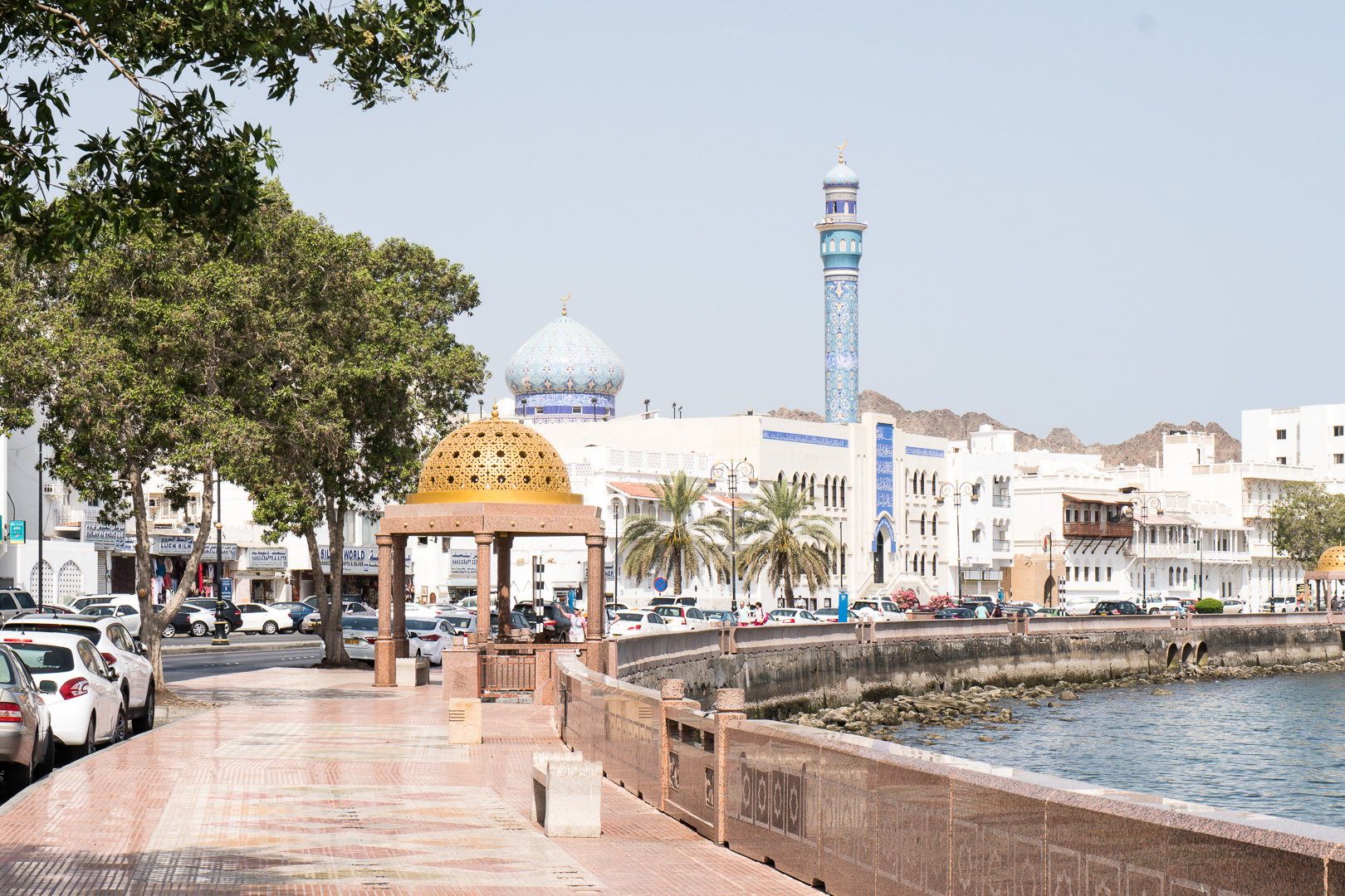 In Muscat wollten wir mal etwas auf eigene Faust unternehmen – das Schiff lag ja nahe am Hafenvorort Mutrah. Den Empfehlungen unseres Reiseführers folgend wanderten wir dann bei 34°C (im Schatten) die schöne Corniche entlang Richtung Muscat. Was uns der Reiseführer nicht sagte: es waren 5 km Fußweg nach Muscat und es gab unterwegs keinen Schatten! In Muscat angekommen regenerierten wir kurz bei einem leckeren Eistee in einem Museumscafe. Anschließend nahmen wir noch den Palast von Sultan Quaboos in Augenschein bevor wir wieder – diesmal per Taxi – nach Mutrah zurück fuhren. Schließlich brauchten wir unsere letzte Kraft noch für eine Shopping-Tour im Mutrah-Soukh – Datteln, Weihrauch, Gewürze, was man halt so braucht!