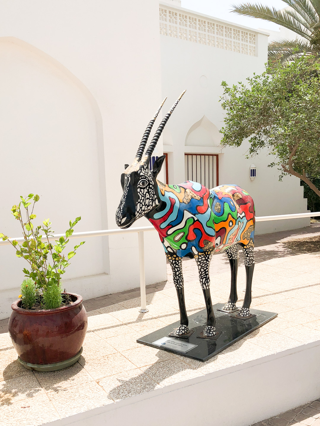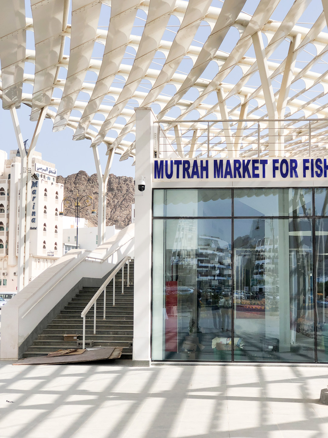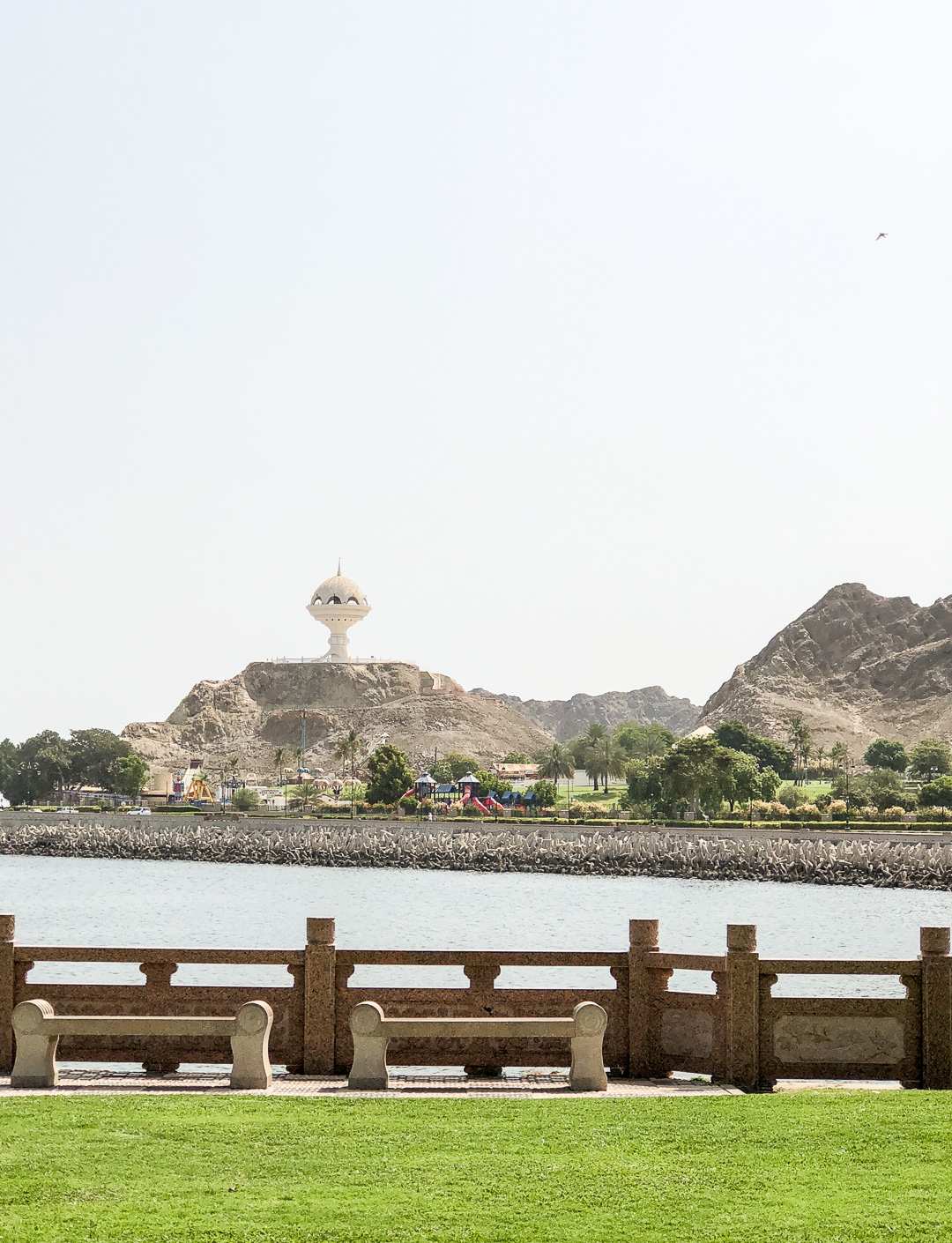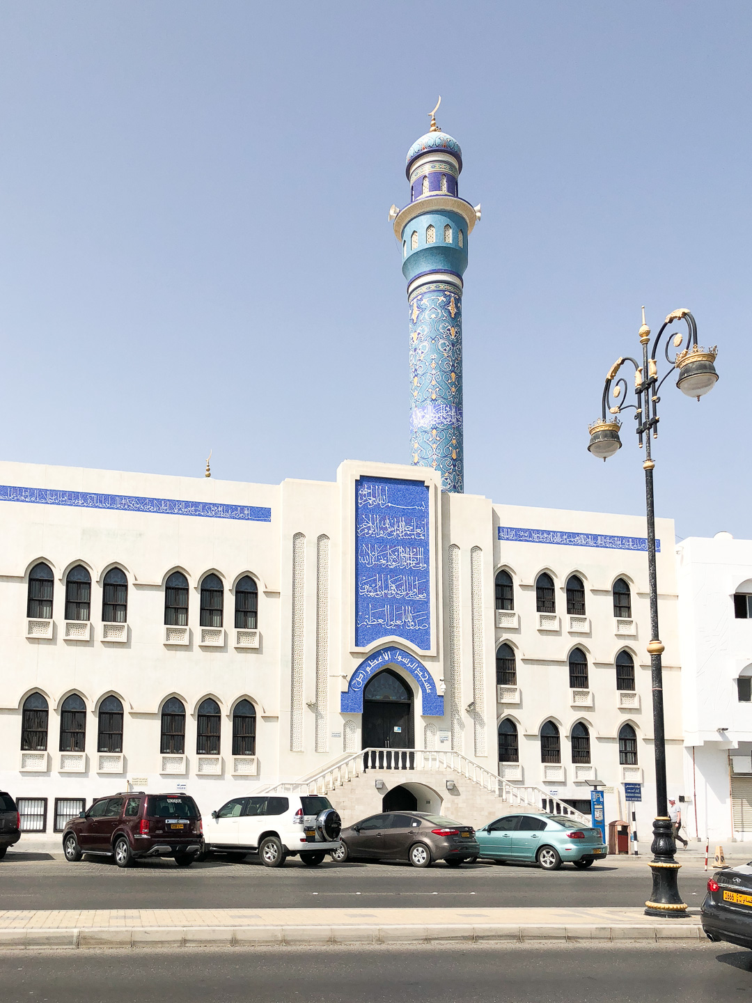 In Muscat wollten wir mal etwas auf eigene Faust unternehmen – das Schiff lag ja nahe am Hafenvorort Mutrah. Den Empfehlungen unseres Reiseführers folgend wanderten wir dann bei 34°C (im Schatten) die schöne Corniche entlang Richtung Muscat. Was uns der Reiseführer nicht sagte: es waren 5 km Fußweg nach Muscat und es gab unterwegs keinen Schatten! In Muscat angekommen regenerierten wir kurz bei einem leckeren Eistee in einem Museumscafe. Anschließend nahmen wir noch den Palast von Sultan Quaboos in Augenschein bevor wir wieder – diesmal per Taxi – nach Mutrah zurück fuhren. Schließlich brauchten wir unsere letzte Kraft noch für eine Shopping-Tour im Mutrah-Soukh – Datteln, Weihrauch, Gewürze, was man halt so braucht!
