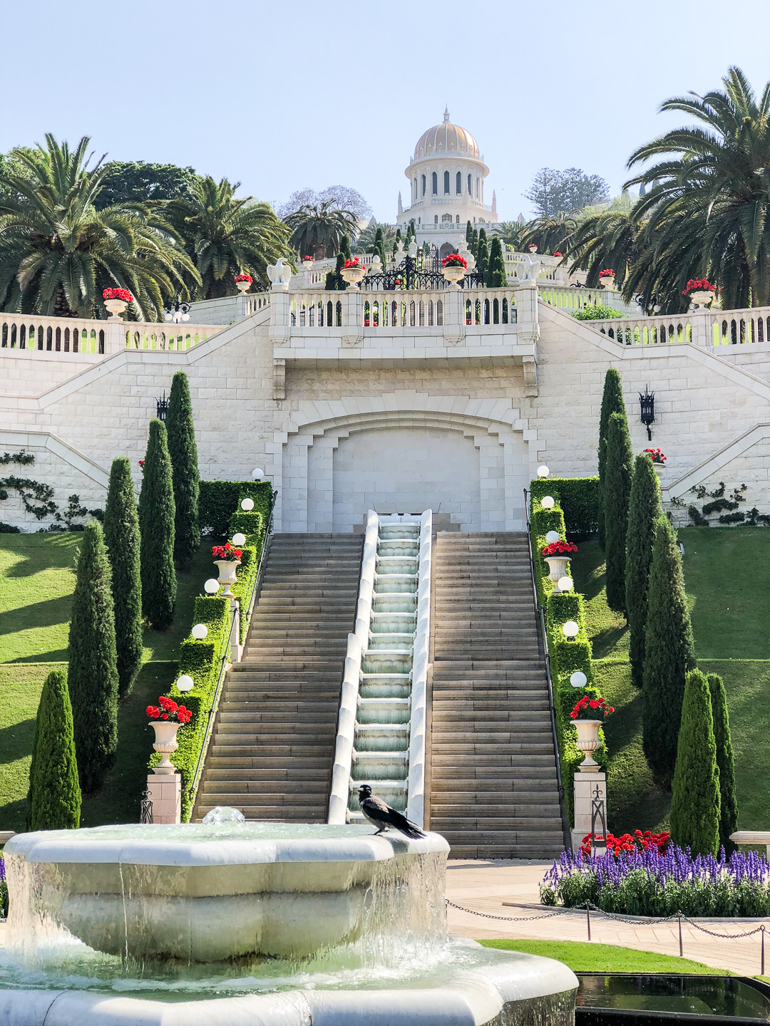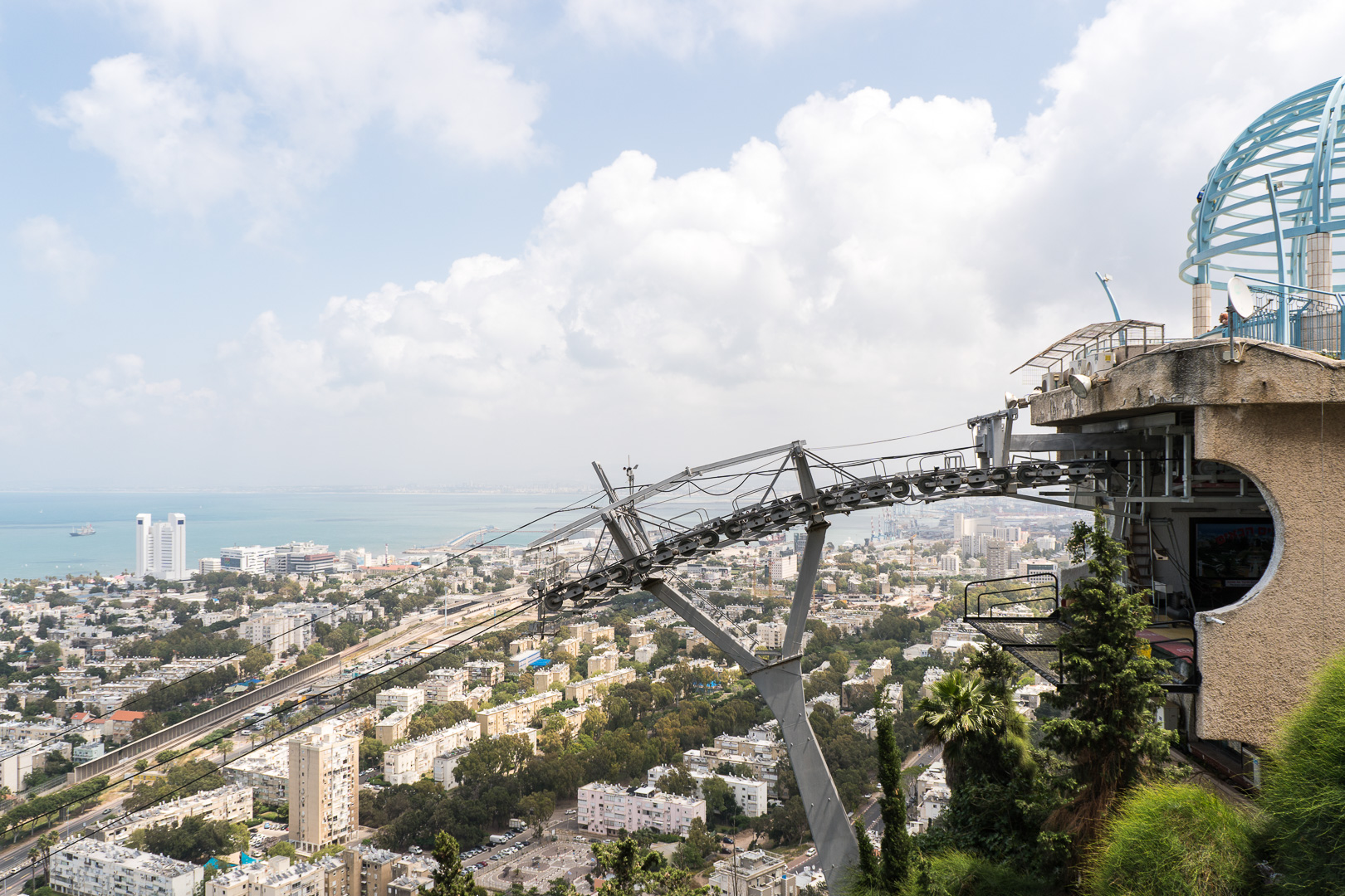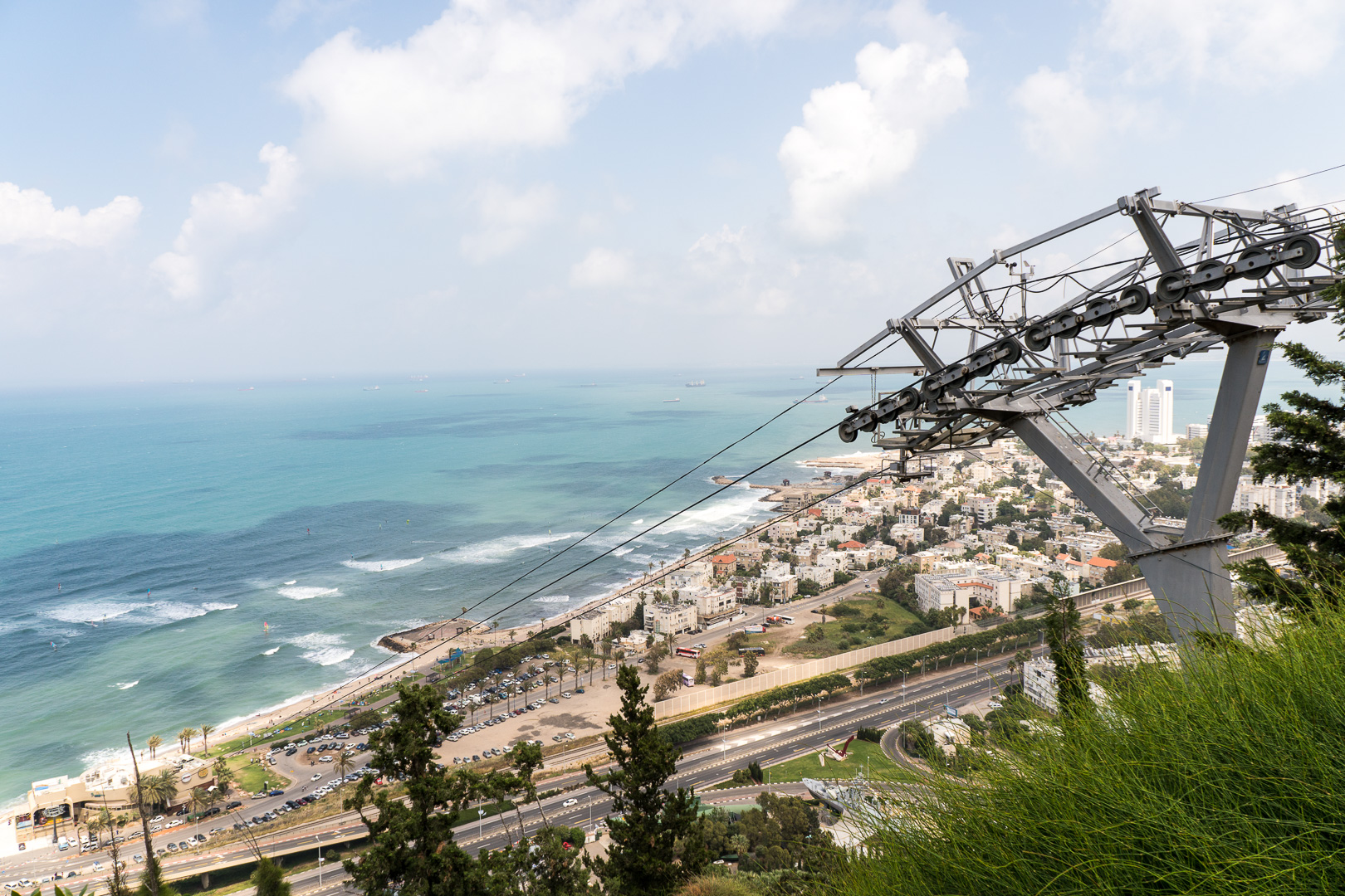 Nach einer Fahrt durch die Stadt wieder hinunter ans Meer ließen wir die Fahrräder stehen und fuhren mit der Haifa-Seilbahn trotz Höhenangst (!Klaus!) den Berg Karmel hinauf zum Karmelitenkloster Stella Maris mit der Elija-Höhle, die als ehemaliger Wohnort und Grab des Propheten gilt. Der Aussichtspunkt bietet einen Ausblick über die gesamte Bucht von Haifa. Wieder unten angekommen genossen wir die frische Brise an der türkis-blauen Küste und verbrachten den Sabbat-Nachmittag wie die Einheimischen an der Promenade. Mit einem kurzen Abstecher zu den hängenden Gärten der Bahai mit dem Schrein des Bab (leider war geschlossen) beendeten wir unsere entspannte Radtour.