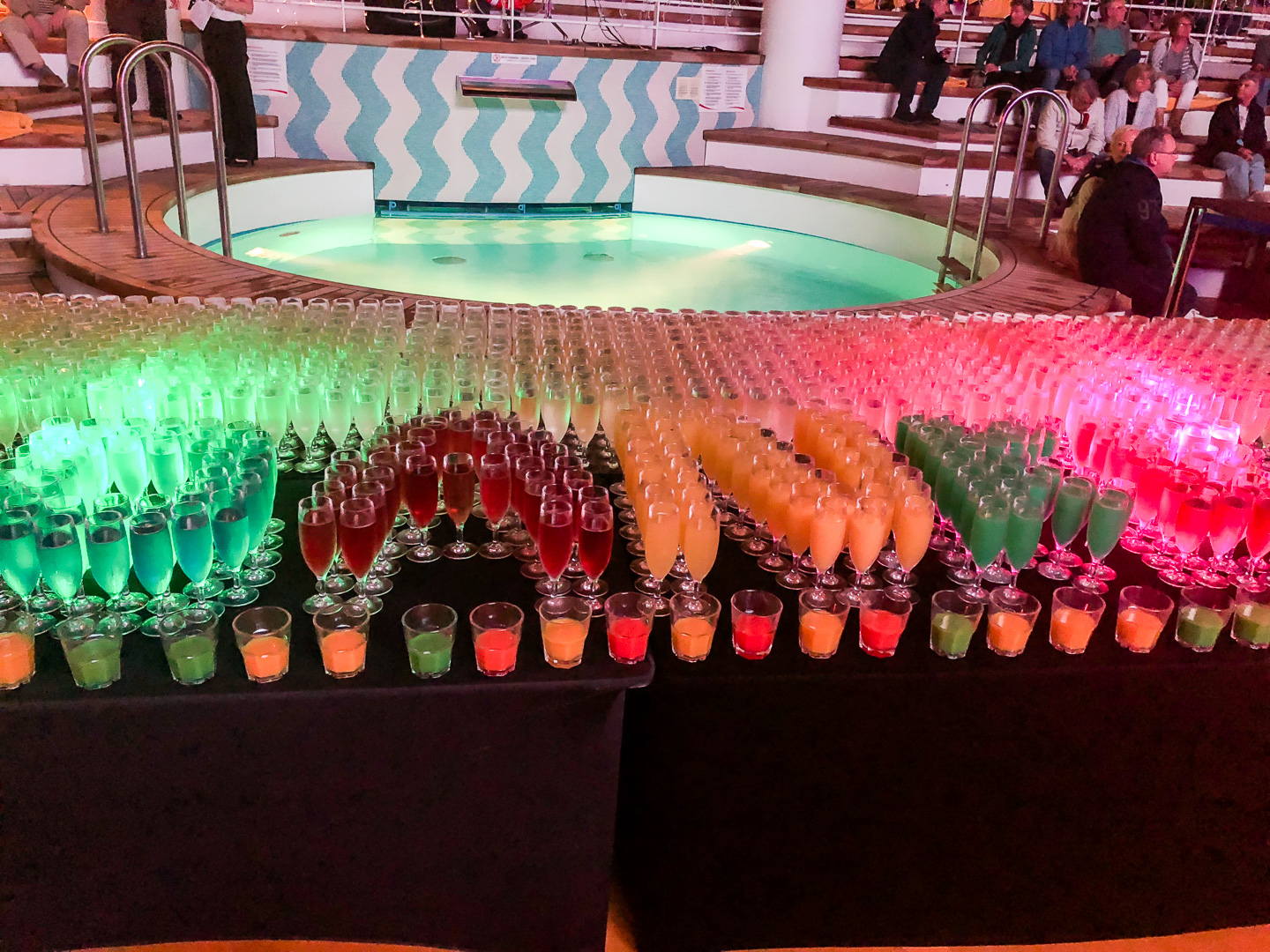 Von Hamburg im Nachtflug nach Dubai und ab Mallorca wieder zurück; Bremen <-> Hamburg jeweils mit dem Zug. Dazwischen lagen nicht nur sehr schöne Reiseziele, viele Seetage – alleine 4 zwischen Salalah und Aqaba – sondern auch ein überaus abwechslungsreiches Bordleben: Unterhaltung mit Manes Meckenstock und Kim Bärly, eine Cartoonshow von Piero Mastalerz, informative Vorträge unserer Lektorin Nadja Münchenhagen, entspannte „Lounge-Abende“ auf dem Pooldeck mit „unserem“ Gitarristen Victor, etliche Cocktails, gewonnener Champagner (Publikumspreis bei „Wer wird Milliomär“) und leckeres Essen im Rossini und Sushi-Restaurant.