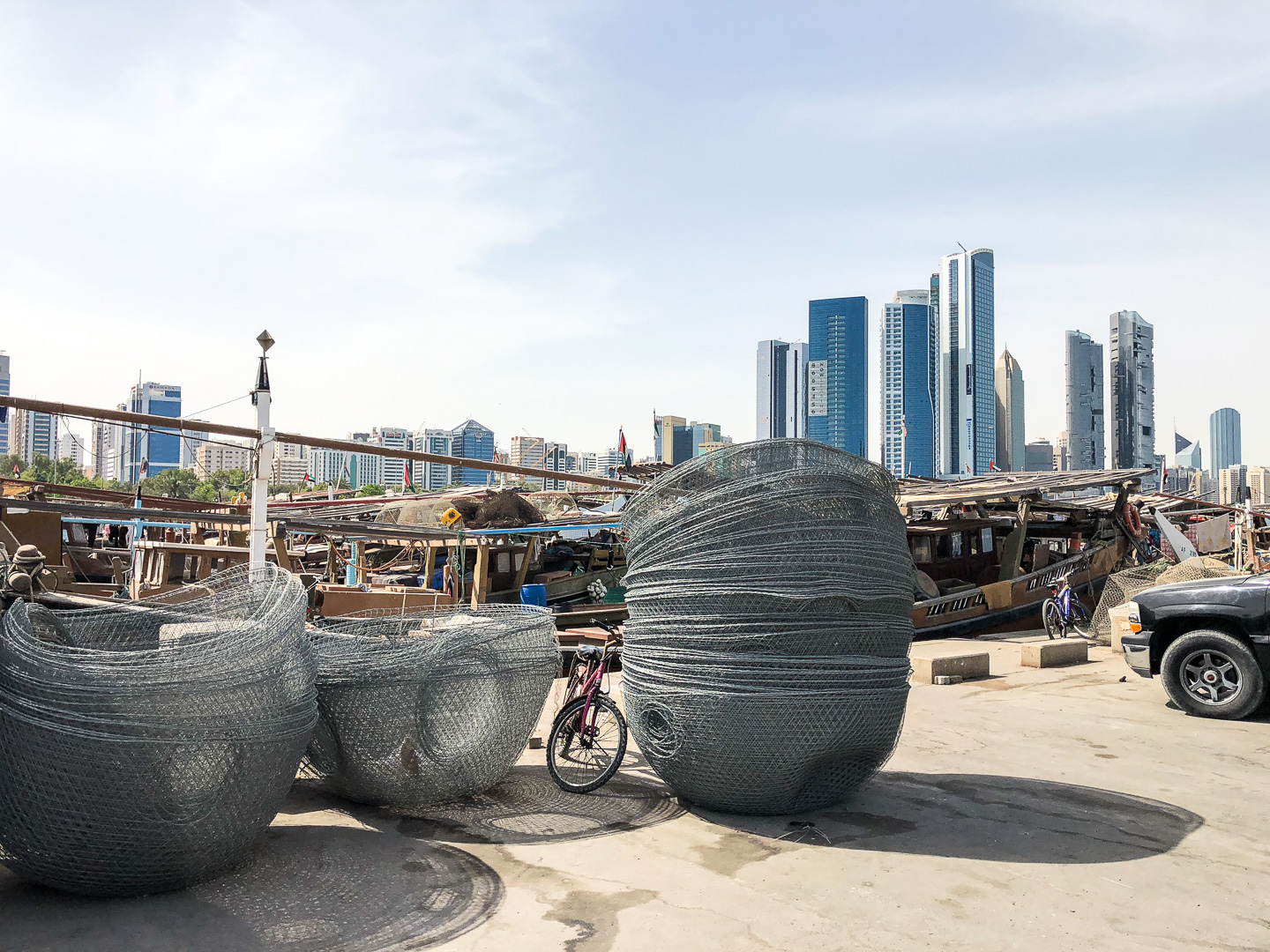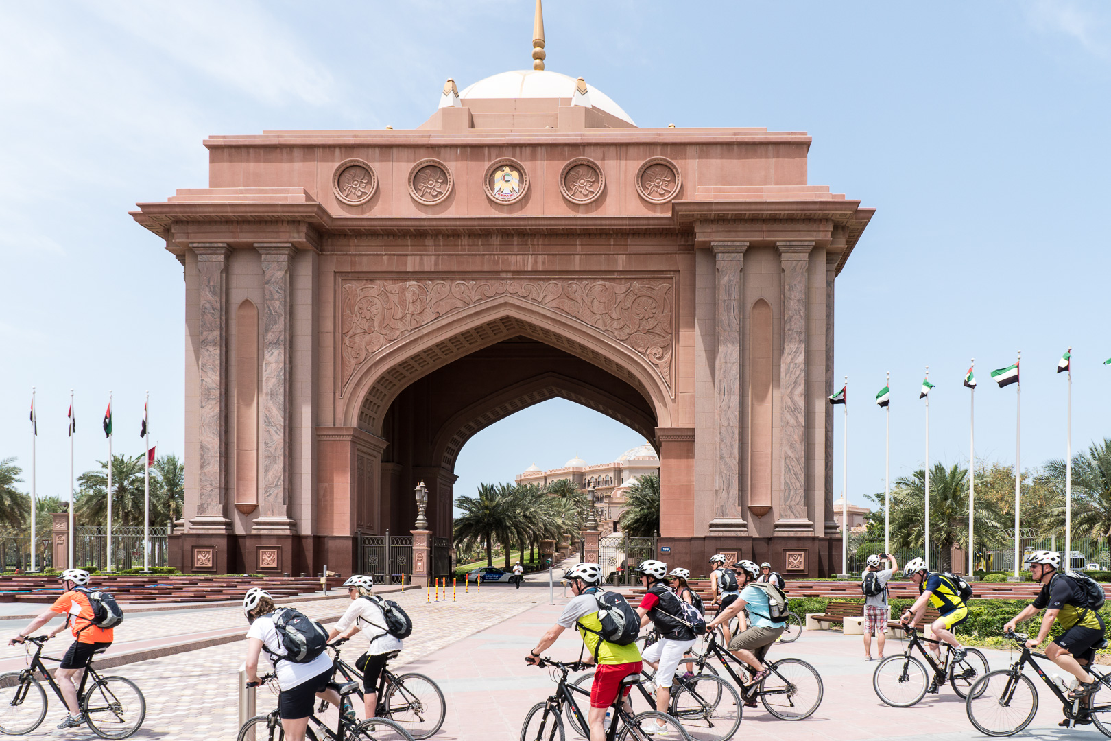 Am Vormittag unternahmen wir wieder eine Fahrradtour: bei 32°C (im Schatten) erkundeten wir die Hotspots von Abu Dhabi. Entlang der 7 km langen, üppig bepflanzten Corniche konnten wir nach Besuch des Fischmarkts die Skyline bewundern, einen Abstecher in das Freilicht-Heimatmuseum machen und das Luxushotel Emirates Palace sowie den Palast von Scheich Chalifa bin Zayid Al Nahyan aus der Nähe bewundern.