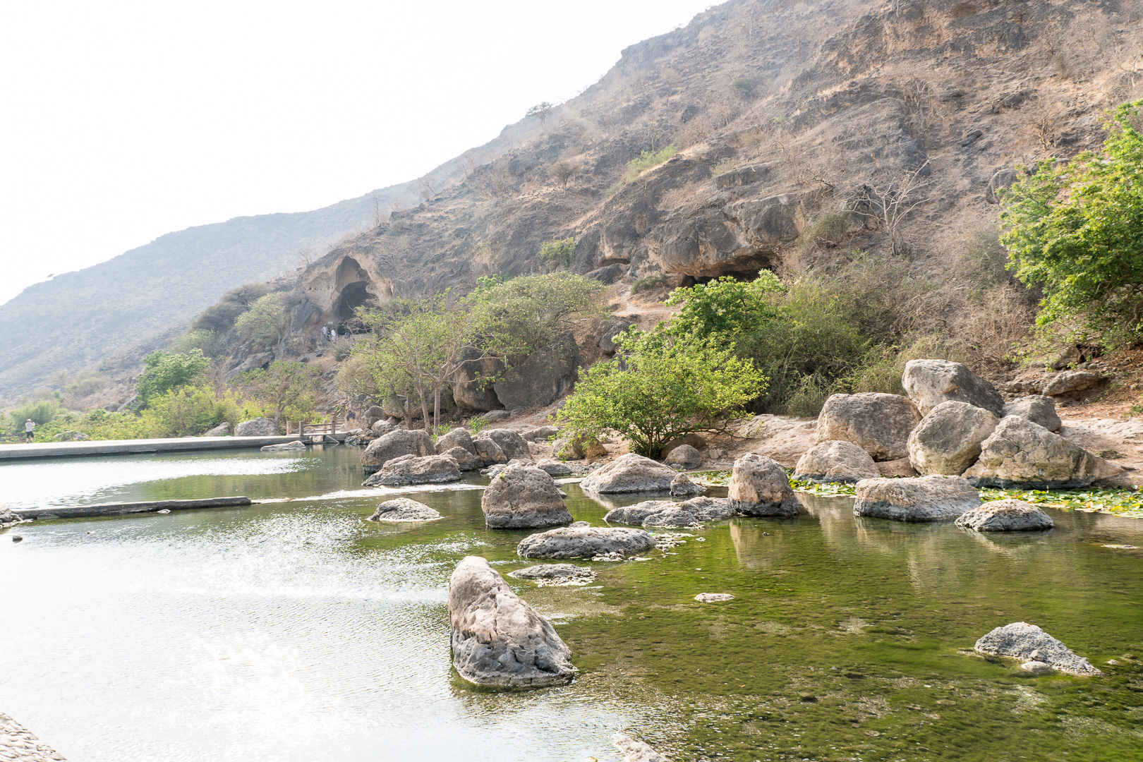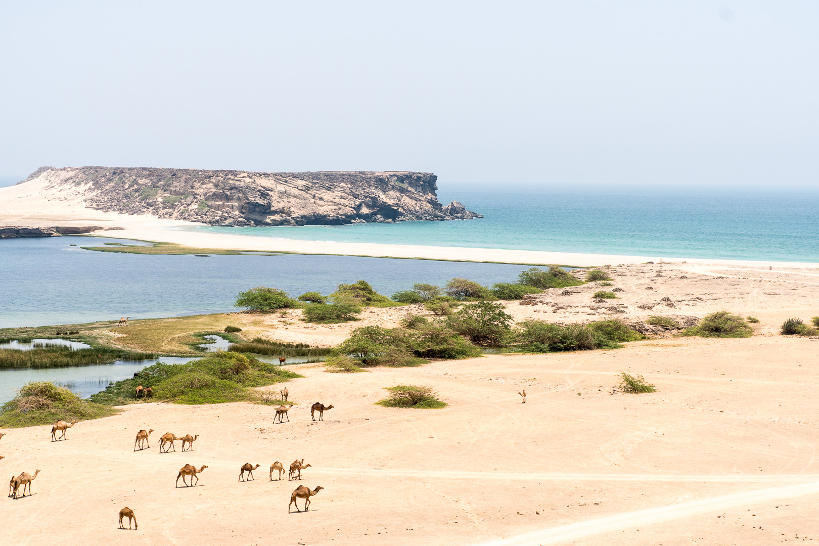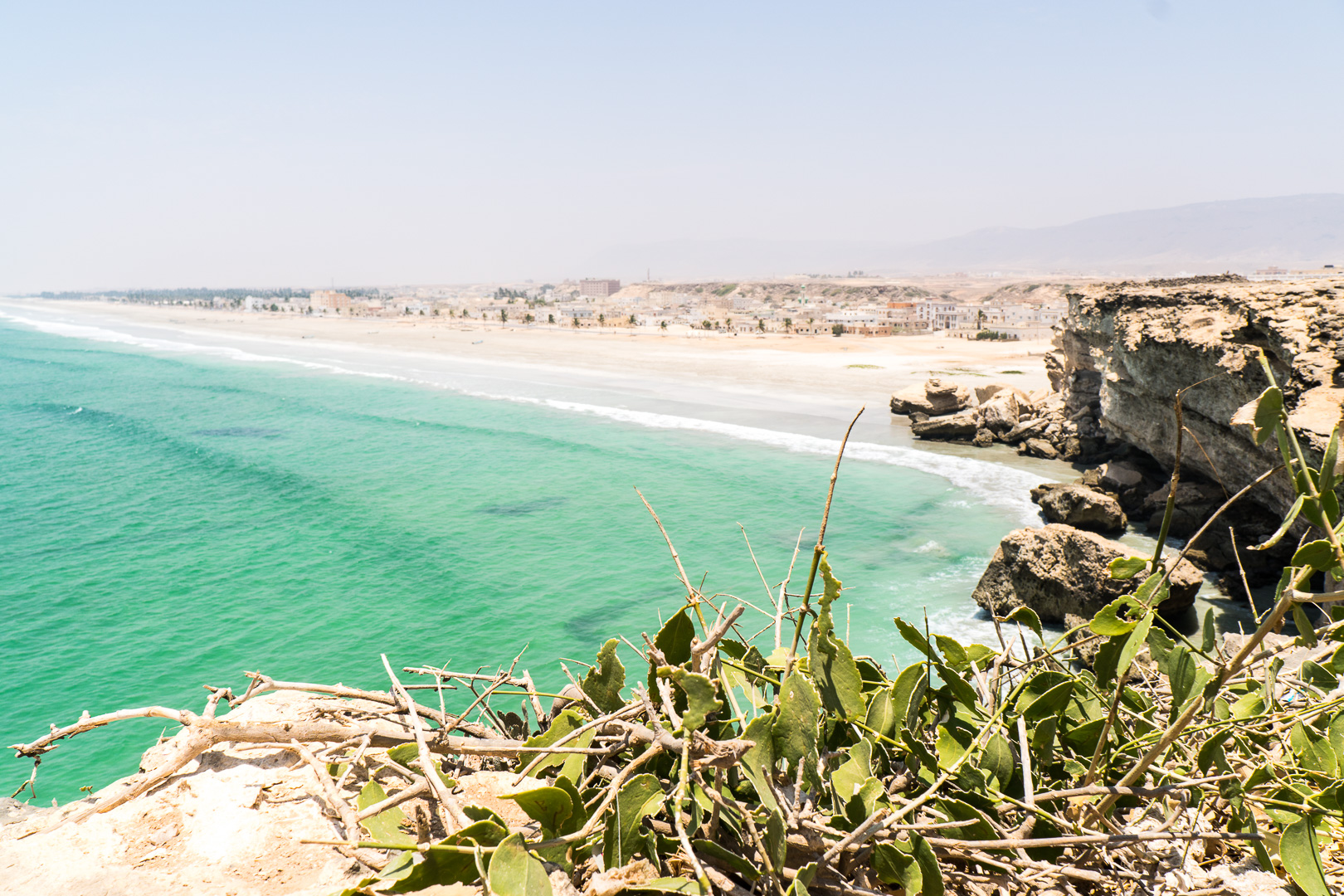 War es bisher in Arabien trocken, wüst und steinig, so präsentierte sich Salalah in geradezu tropischem Grün. Das gilt zumindest für die Küstenregion, das Dhofar-Gebirge im Hinterland ist – bis auf einige Oasen – „Wüste as usual“. Und heiß war es hier wie dort!