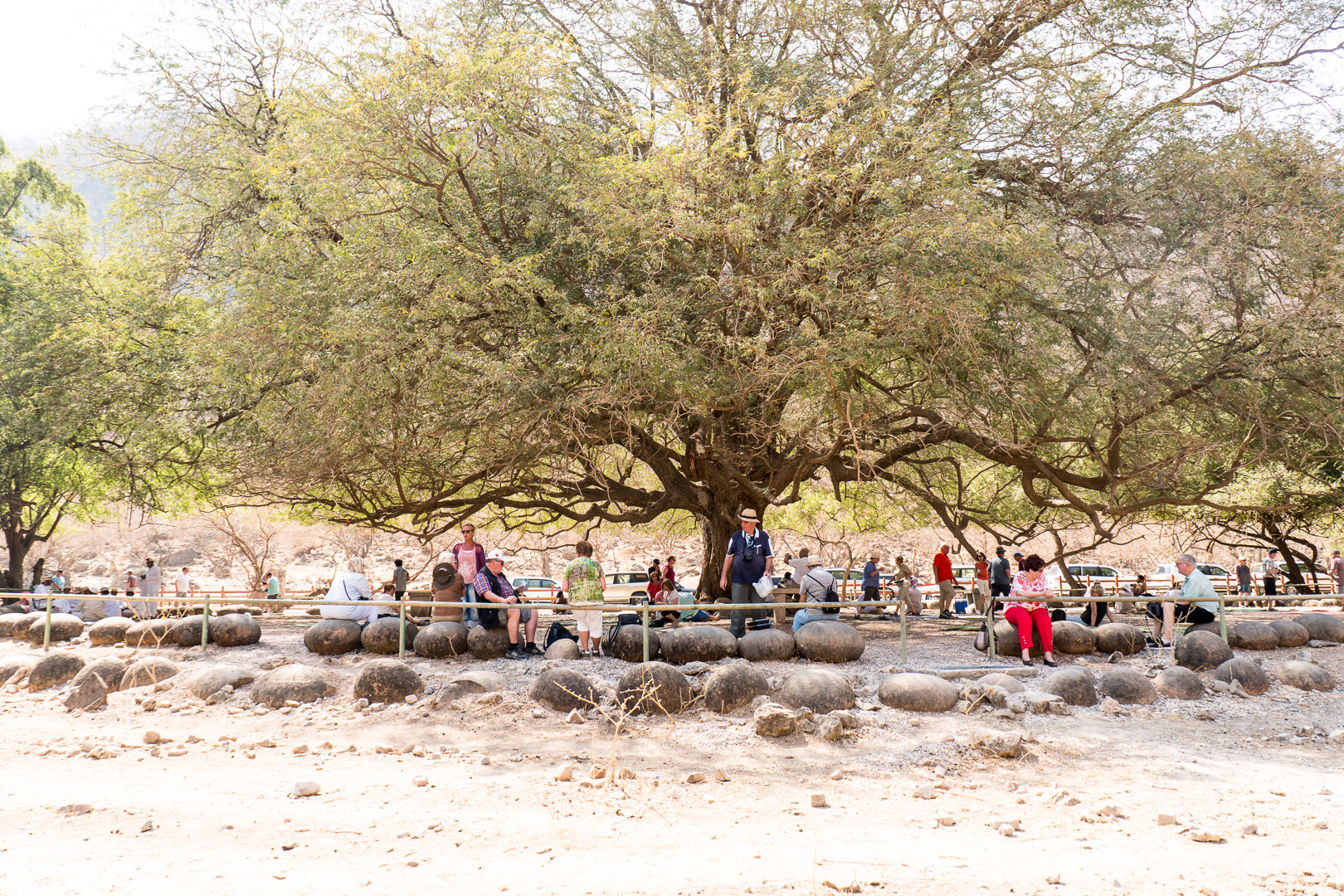 Im Rahmen eines AIDA-Ausflugs konnten wir das alles in Augenschein nehmen. In einem Konvoi mit üner 40 Jeeps lenkte unser omanischer Fahrer den bequemen und angenehm klimatisierten Land-Cruiser mit uns und einem sehr netten Düsseldorfer Ehepaar hinauf ins Gebirge und von Oase zu Oase. Unser gemeinsames Englisch reichte soweit, um etwas mehr über das Leben im Oman zu erfahren. Viel Spaß hatten beide Seiten dabei. Die Rast in einem Tamarindenwald bei leckerem einheimischen Fingerfood – leider in Plastikgeschirr serviert – war einer der Höhepunkte des Ausflugs.