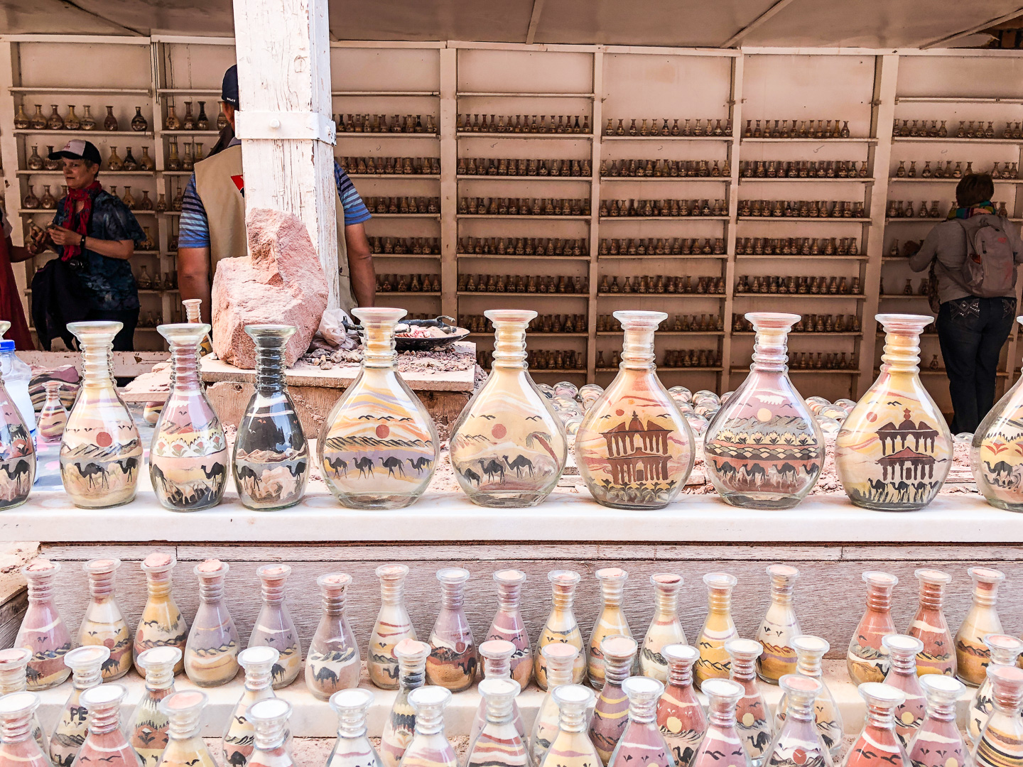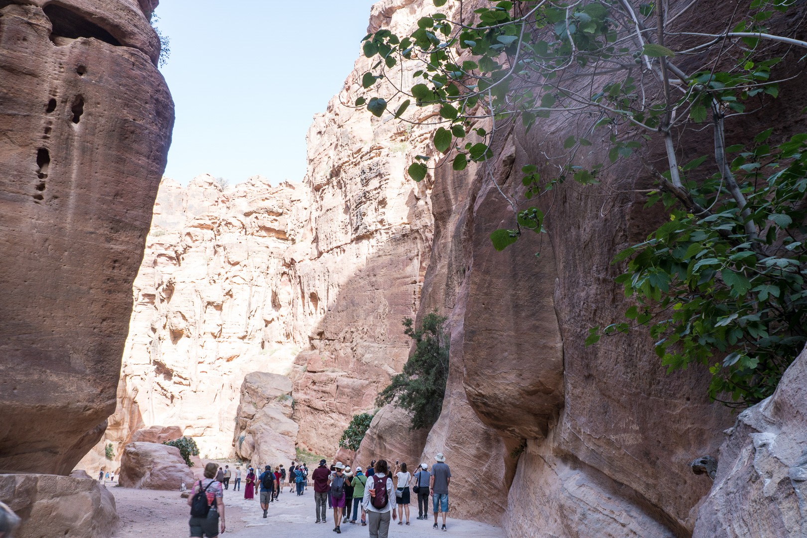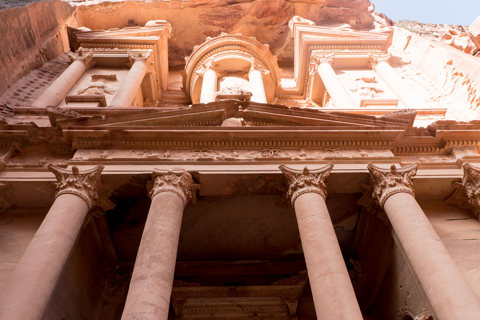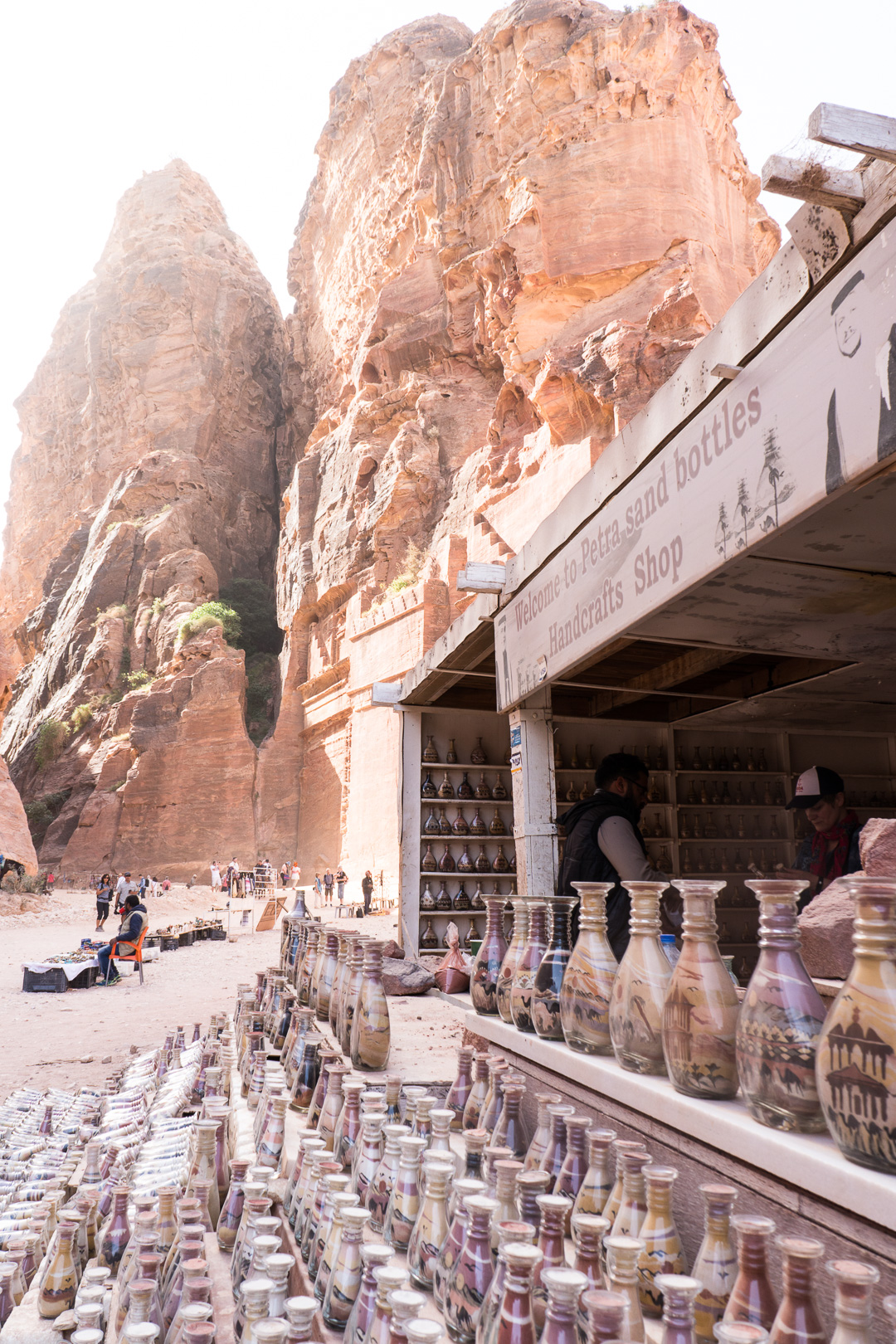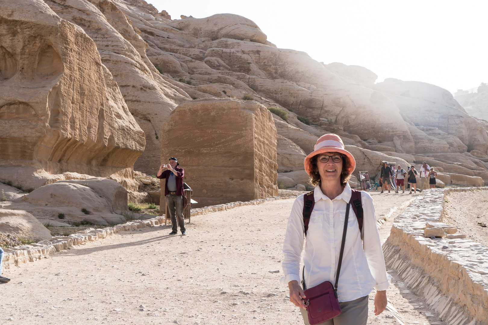 Die beste Entscheidung unseres Urlaubs war, den Besuch der nabatäischen Felsenstadt Petra mit einer Übernachtung vor Ort zu verbinden. So fuhren wir bereits am Nachmittag nach Ankunft im Hafen von Aqaba mit dem Bus durch die staubigen Berge auf eine Höhe von 1000 m ins jordanische Hinterland. Nach Check-in und kurzem Abendessen im Hotel direkt neben dem Besuchereingang zu Petra konnten wir dann bei angenehmen Temperaturen um 25°C bei einer exklusiven Veranstaltung mit einer überschaubaren Besucheranzahl dem Schatzhaus von Petra einen ersten Besuch bei Kerzenschein abstatten.