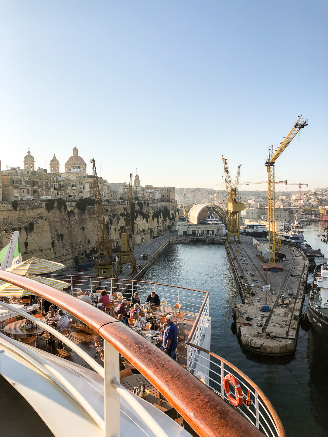 Im Mittelmeer angekommen stellten wir fest, dass wir uns nicht nur von Arabien Richtung Europa bewegt hatten, sondern auch in einer anderen klimatischen Zone angekommen waren: plötzlich gab es mal eine frische Brise – und schon hustete das halbe Schiff.