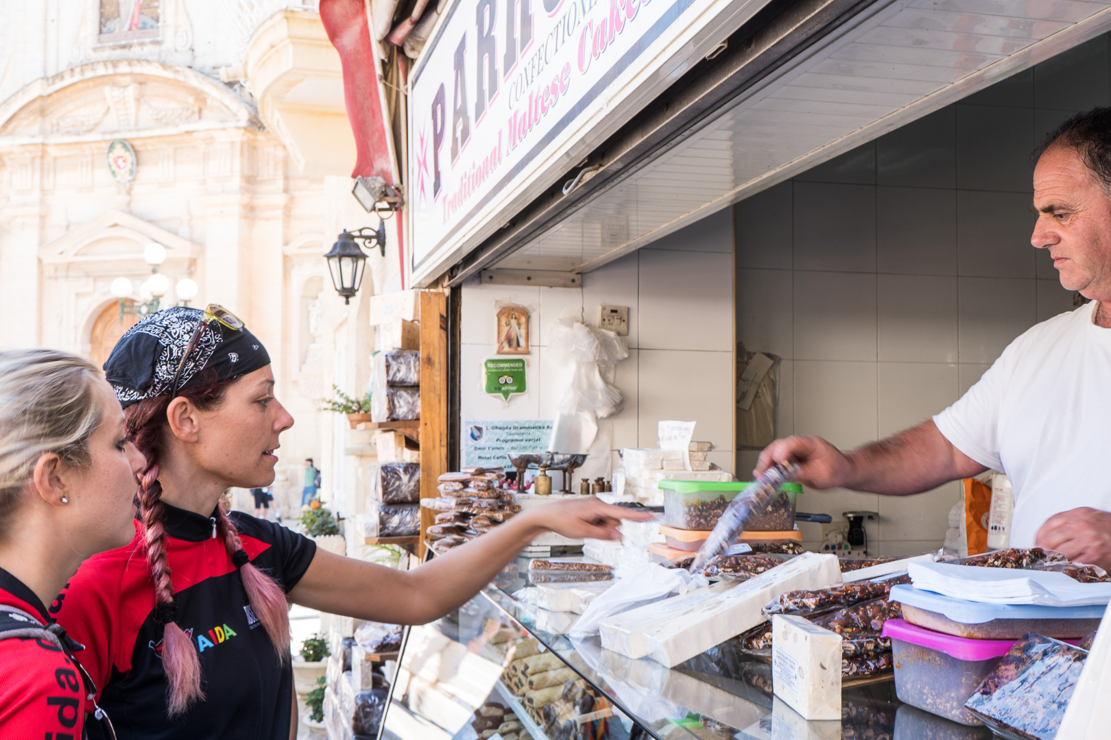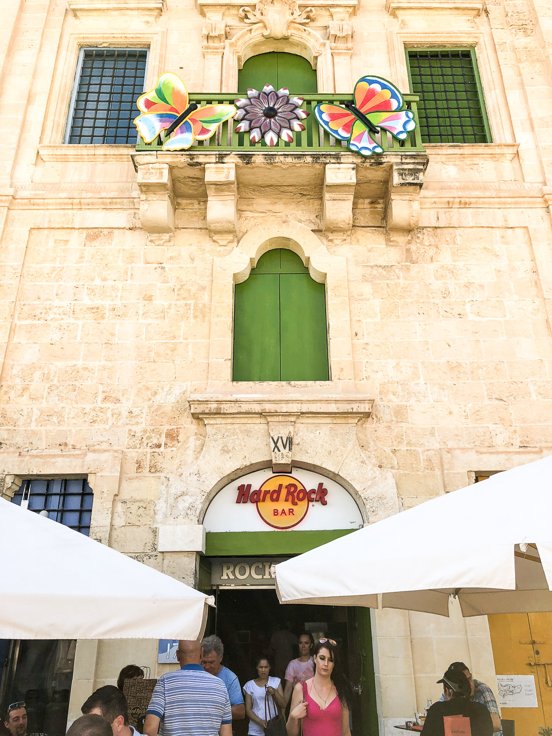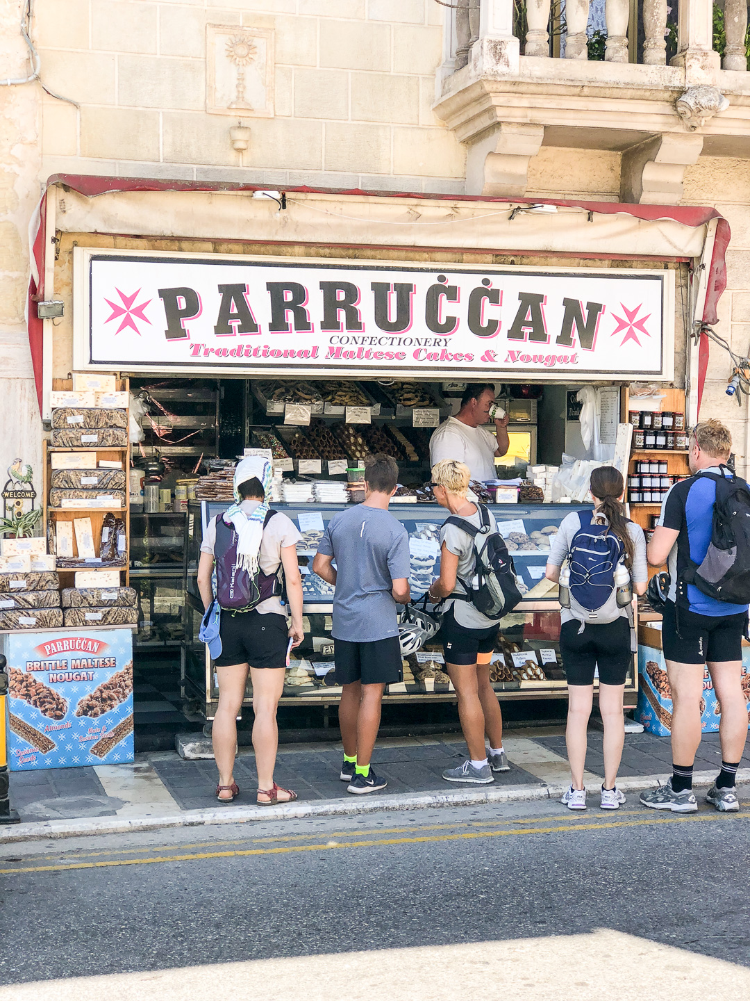 Über Land ging der Ausflug zuerst quer über die Insel bis zu den Dingli-Klippen an die Südküste. Auf dem Rückweg über Rabat plünderten wir ein Geschäft mit einheimischen Süßigkeiten, bevor wir auf den Rückweg nach Valletta alle wichtigen Sehenswürdigkeiten und Aussichtspunkte abklapperten. Nach der Fahrradtour entdeckten wir im Hafen noch das Hard-Rock-Cafe – jetzt konnte auch Bine einen letzten Haken auf ihrer To-Do-Liste setzen: T-Shirt gekauft!
