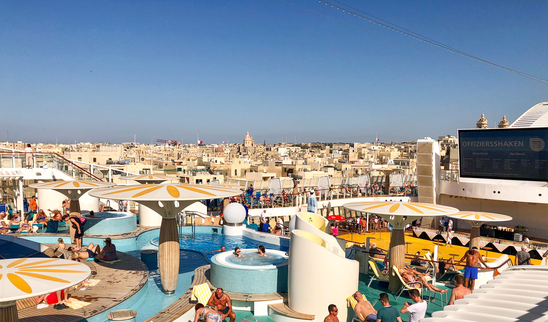 Und nicht zu vergessen die Hitze Arabiens, die uns angenehme (Party-) Abende an Deck beschehrte.