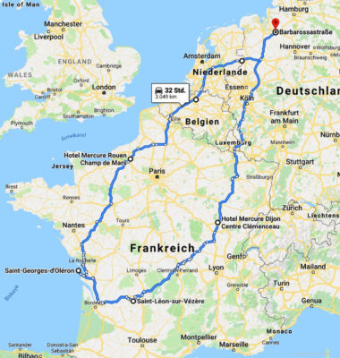 Da es leider keine Autoreisezüge (mehr) Richtung Frankreich gibt, mussten wir die ganze Strecke selbst fahren. In Dijon war unsere erste Zwischenübernachtung auf dem Weg in die Dordogne. Und nach unserer Schlemmerwoche auf der Ile d´Oleron haben wir in Rouen eine Übernachtungspause auf dem Weg zurück nach Bremen eingelegt. Aber unsere Zwischenstationen erwiesen sich überraschenderweise nicht nur als Mittel zum Zweck. Denn wenn wir eines in diesen zwei Wochen erfahren haben: in Frankreich ist es überall toll!