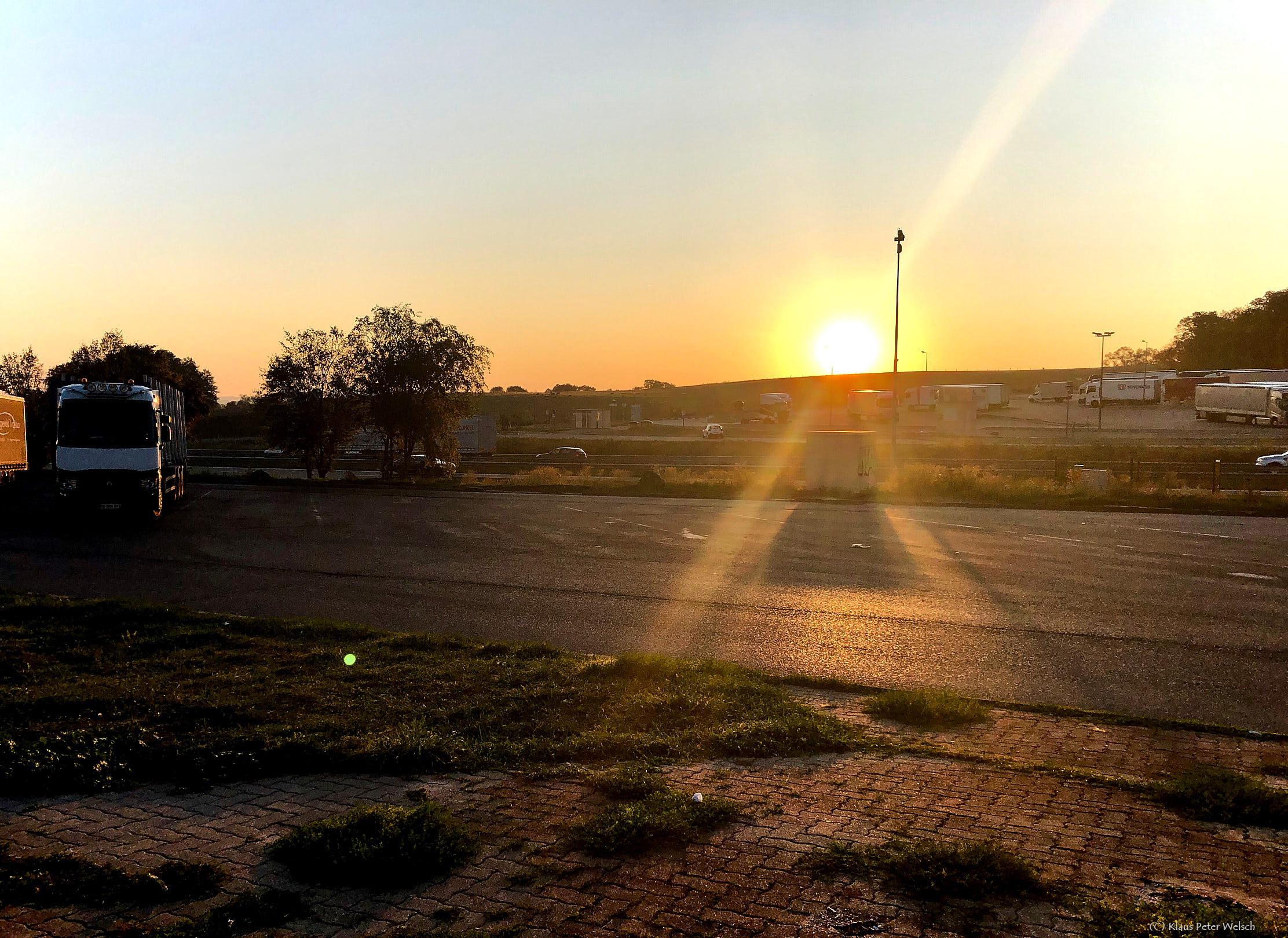 Sonnenaufgang auf erstem Autobahnrastplatz in Frankreich