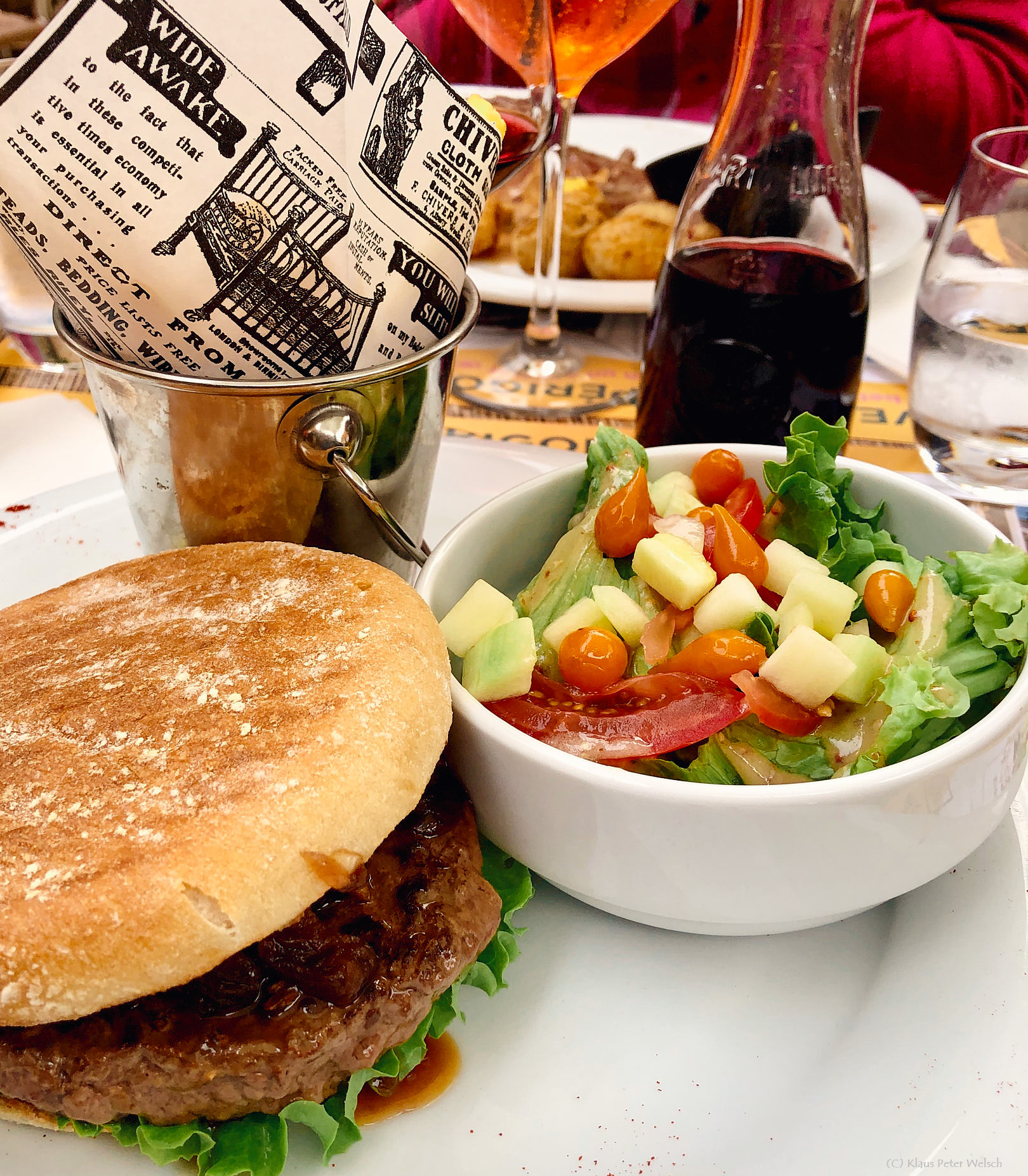 Essen in Frankreich: Perigord-Burger mit Foie gras im Camplingplatz-Restaurant
