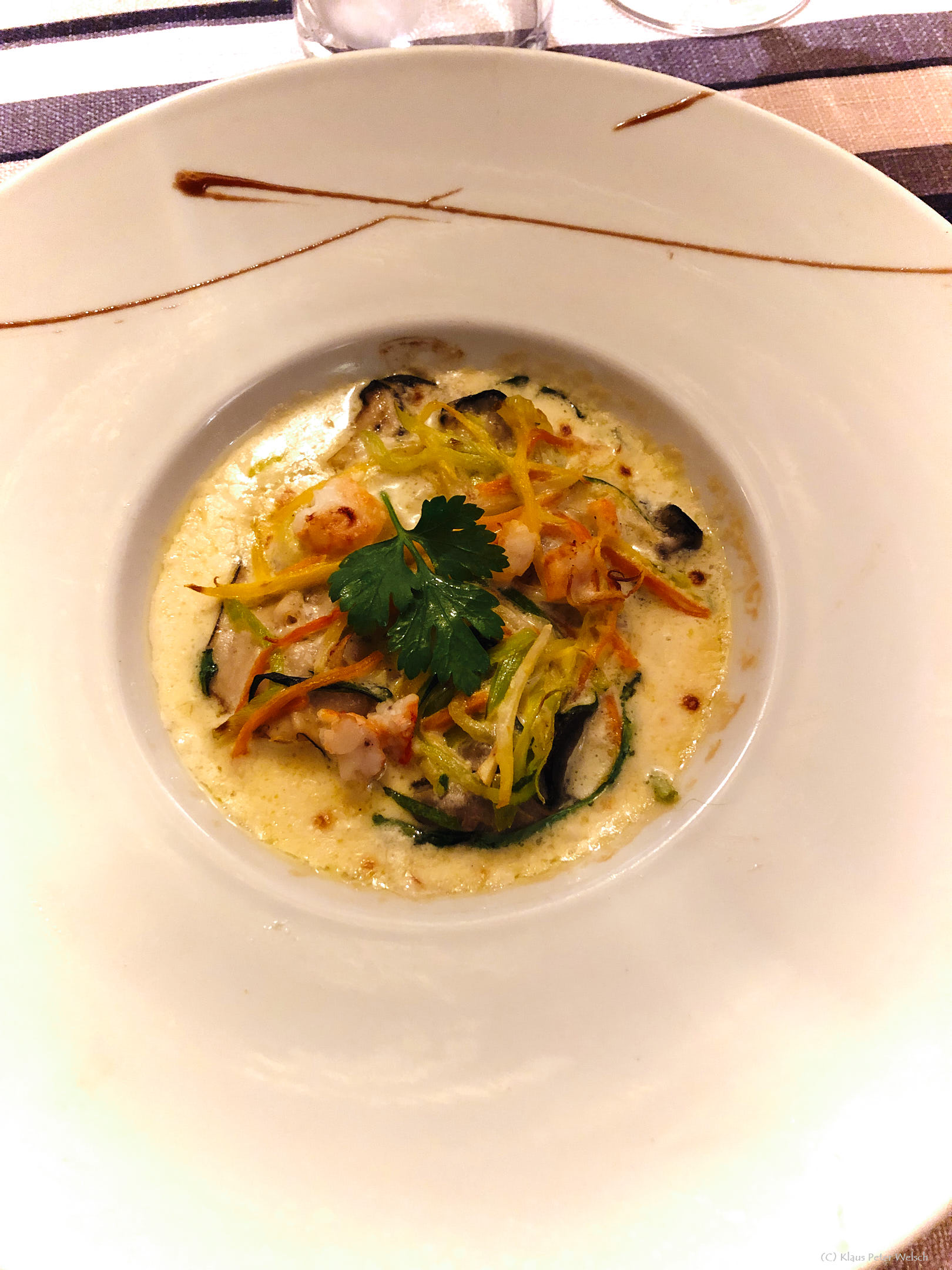 Inselessen: lauwarme Austern mit Gemüse als Vorspeise