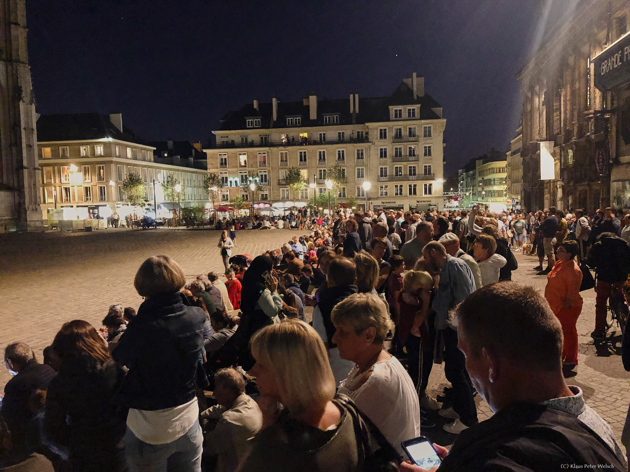 Rouen: tausende Menschen warten auf die abendliche Lichtshow an der Kathedrale